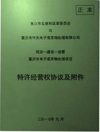 從2010年開始,公司就是重慶市政府公開招投標(biāo)確定的重慶市電子廢棄物處理特許經(jīng)營權(quán)企業(yè),在重慶市“一小時經(jīng)濟圈”范圍內(nèi)23個區(qū)縣,開展電子廢棄物綜合回收機處理處置業(yè)務(wù)。